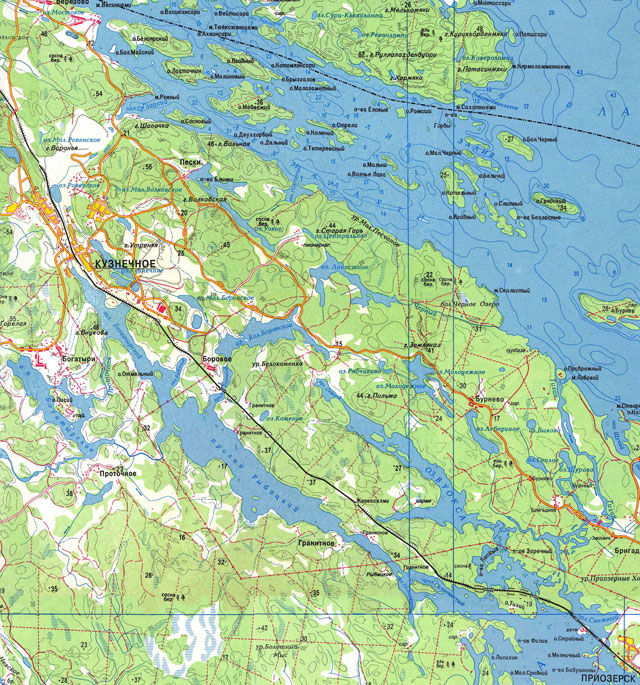 Озеро Вуокса в районе Приозерска, 1:50000